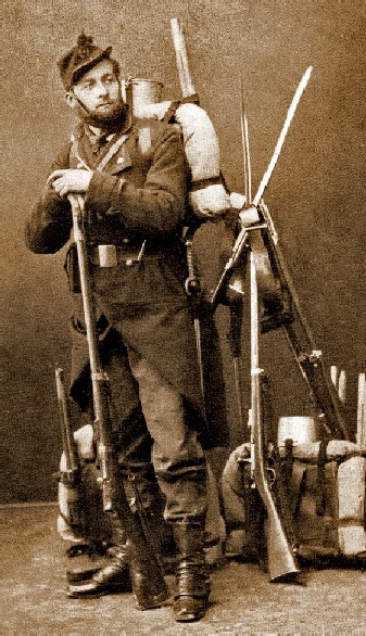 Les combattants de 1870 et leurs uniformes. Quelques images d'Épinal (et autres). Affiches, dépêches et proclamations (France). Les "envahisseurs" allemands. Récits de combats. Des armes et des accessoires. La résistance. Pigeons et ballons. Curiosités images, objets et textes divers sur la guerre de 1870-1871. Des livres "indispensables" et des liens de sites sur la guerre de 1870-71. Vétérans, décorations et médailles. Les victimes de la guerre. Drapeaux tambours et clairons. Caricatures et images satiriques. La guerre de 1870-71 en chromos de chocolateries. Livre : "Les loisirs du fusilier Roux" le carnet de croquis d'un garde mobile parisien. Douze protège-cahiers "Nouvelles anecdotes militaires". Prisonniers de guerre. Deux albums complets de Draner "Souvenirs du siège de Paris". Trente images allemandes "Der Deutsch-Krieg.1870-71". Un album de Cham “Chassepotiana”. Un album complet L’armée française du second empire. Un album de Gédéon “Nos vainqueurs”. Cent images tirées du livre ‘LArmée de l’Est” de Grenest. Cent images tirées du livre ‘LArmée de la Loire” de Grenest. Dépèches militaires (Allemagne). Les dessins d’Ernest Peulot sur 1870-1871 Index général des noms de personnes cités dans la page Opérations militaires. Menu des pages "curiosités, images et textes divers". Aquarelles d’Auguste Raffet “Costumes militaires sous les deux sièges de paris “. Cantinières et  héroïnes de la  guerre de 1870-71. Une collection de 78 protège-cahiers divers sur 1870-71 Cantinières et  héroïnes de la  guerre de 1870-71. Une collection de 78 protège-cahiers divers sur 1870-71 Livre : “Les champs de bataille de 1870”. Index général des noms de lieux cités dans la page Opérations militaires. Retour vers la page d'accueil. Cantinières et  héroïnes de la  guerre de 1870-71. Une collection de 78 protège-cahiers divers sur 1870-71 Livre : ” Les morts pour la Patrie tombes militaires et monuments”