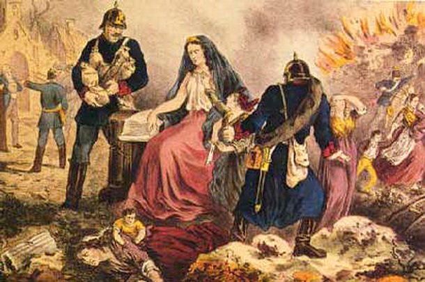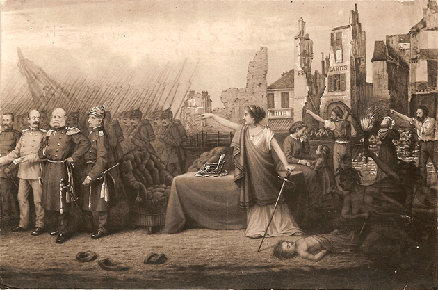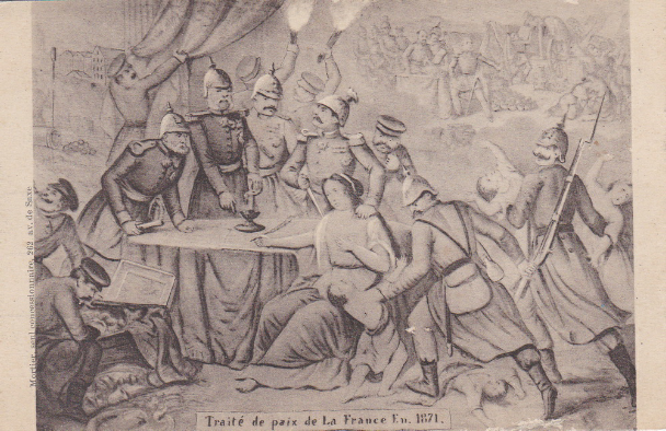 1870 la curée allemande (texte de l'image du haut).  La paix signée, la France crie vengeance (bas). Retour vers la page d'accueil