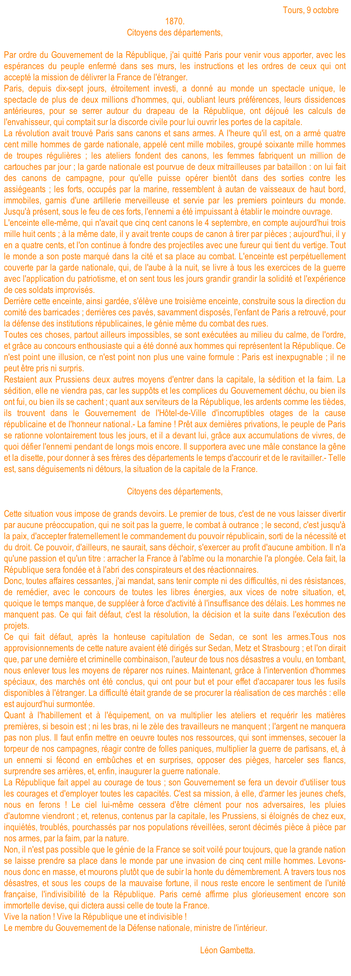 Discours de Gambetta à Tours. Retour