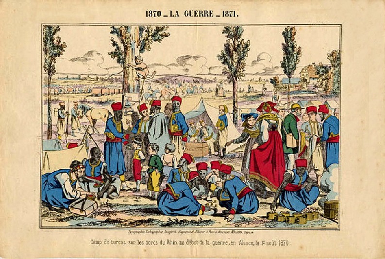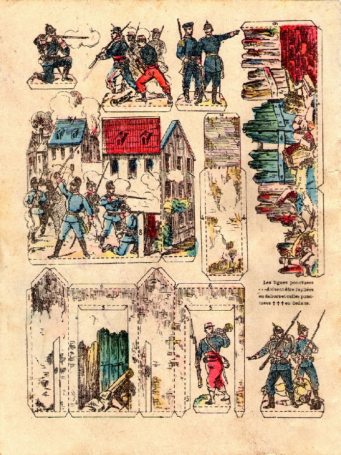 Un curieux “tableau mécanique marchant au sable” appelé le Zouave et le Prussien à fabriquer avec cette image Pellerin.