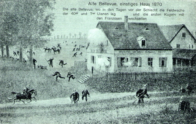 “Die alte Bellevue”près de Sarrebruck le 6 août 1870 et peu après.
