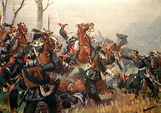 C’est à ce moment que, malgré la configuration du terrain la plus désavantageuse qu’il soit possible d’imaginer, deux régiments de cuirassiers, et un de lanciers, de la brigade Michel, se précipitèrent sur l’infanterie allemande qui était précisément en train d’exécuter une conversion à droite près de Morsbronn. Les Français chargeaient avec la plus grande intrépidité, mais le 32e régiment d’infanterie, sans chercher à s’abriter derrière les couverts qu’offre le terrain, resta déployé en tirailleurs et reçut cette masse de plus de 1000 chevaux, qui s’avançait comme un ouragan, par une fusillade qui fit subir des pertes énormes aux cuirassiers en particulier.